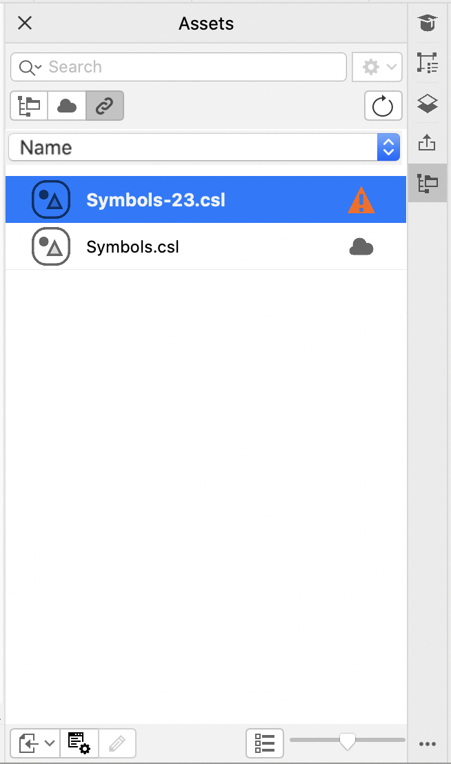 When you find the symbol library you need, you can link it to the document so that it is available for use. The Linked assets view in the Assets inspector lets you access the symbol libraries that are linked to the active document. If the symbol libraries are linked from the Cloud, you can refresh the file list to sync it with your Cloud folder.