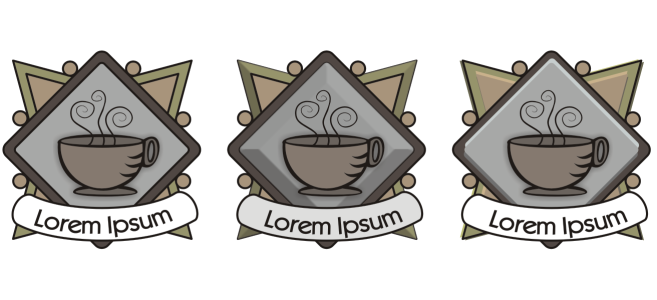 De izquierda a derecha: logotipo sin efecto de bisel, con un efecto de bisel Suavizar borde y con un efecto de bisel Relieve.
