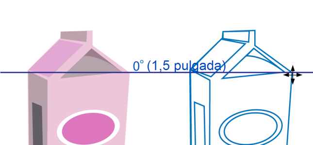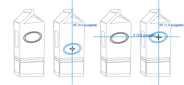 A continuación, se ha arrastrado la elipse hasta el borde del envase y, seguidamente, hacia abajo para visualizar otra guía dinámica (izquierda). Por último, se ha colocado la elipse en la intersección de las guías dinámicas (derecha).