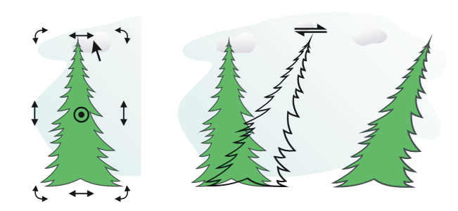 CorelDRAW también permite modificar el punto de anclaje para inclinar y cambiar el tamaño de un objeto a partir de su posición central predeterminada.