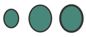从左至右依次为:原始对象;禁用了随对象缩放的缩放对象 - 轮廓粗细没有更改;启用了随对象缩放的缩放对象。