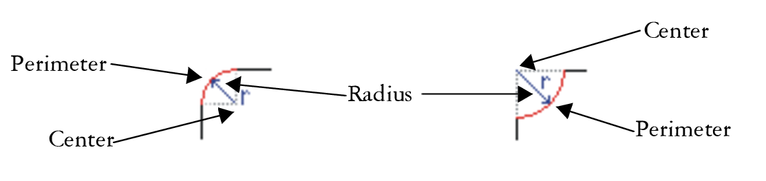 To draw rectangles or squares with rounded, scalloped, or chamfered corners, you need to specify the corner size. For rounding or scalloping a corner, the corner size determines the corner radius. The radius is measured from the curve’s center to its perimeter. Higher corner size values produce more rounded corners or deep scalloped corners.