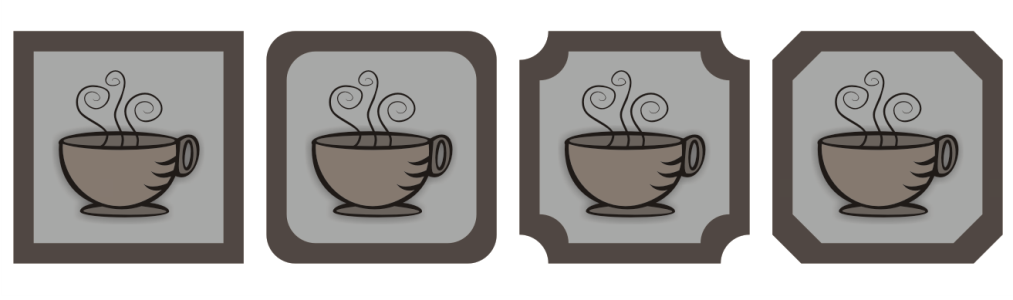 From left to right, you can see standard corners with no changes, rounded corners, scalloped corners, and chamfered corners.