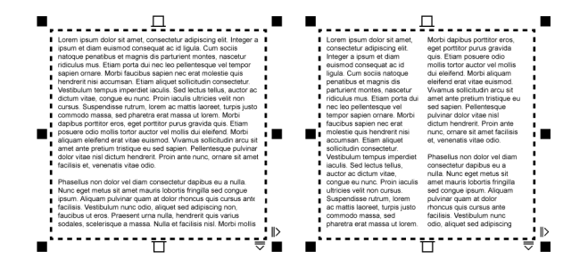 文本框(左)中的文本被排列在两栏中(右)。