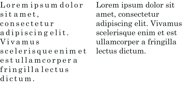 字符间距增大(左)使得文本难以阅读。字符间距缩小(右)提高了可读性。
