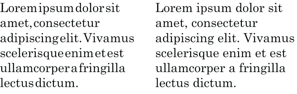 字间距缩小导致难以辨认段落中的每个字(左)。字间距增大(右)使得段落更易于阅读。