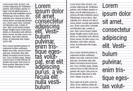使用基线网格(右)对齐具有不同字体和字体大小(左)的文本栏。