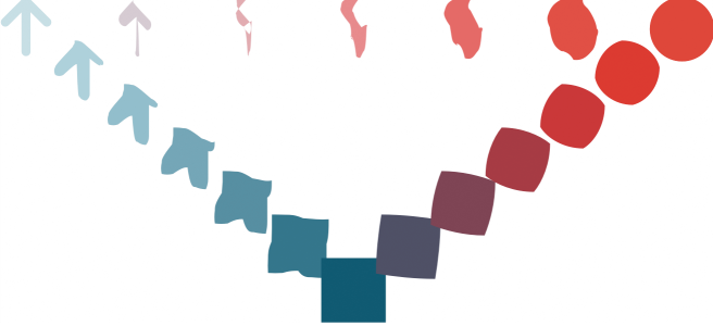 直线调和显示形状和大小从一个对象到另一个对象的渐变。中间对象的轮廓和填充色在色谱中沿直线路径渐变。中间对象的轮廓显示厚度和形状的渐变。