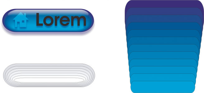 直线调和可用来创建具有玻璃外观的图形。翻转按钮(左)包含紧密重叠的调和对象的调和。