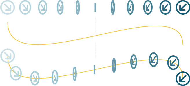 直线调和(上)适合曲线路径(下)。