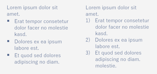 自定义项目符号列表(左)和编号列表(右)