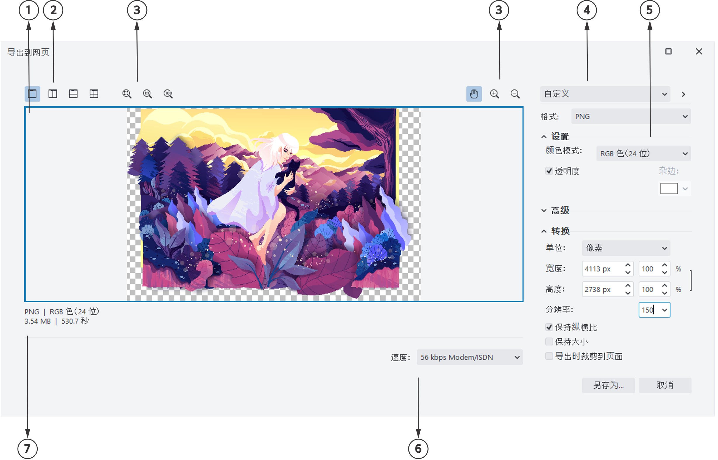 您可以使用预设设置导出与 Web 兼容的文件。这允许您优化文件,且无须修改各个设置。您还可以自定义设置来得到特定结果。例如,您可以调整它的颜色、显示质量和文件大小。