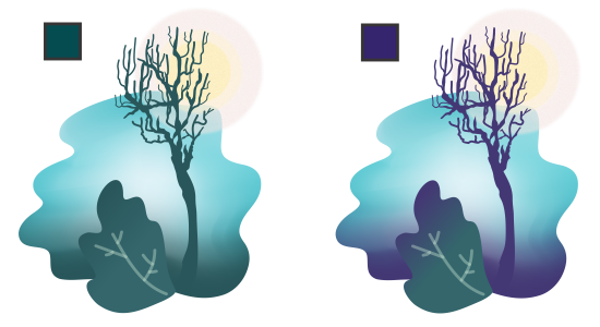 轮廓中使用的选定绿色以及两种填充类型(渐变填充和网状填充)将被替换为紫色。Tricia Flohr 原创作品。