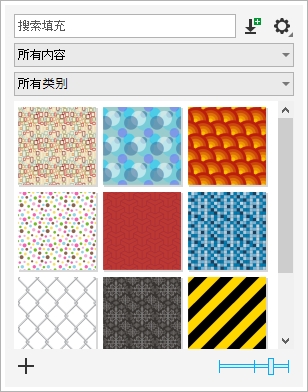 全部内容下的项目显示了 Corel 提供的填充包以及您添加的任何填充包和填充。