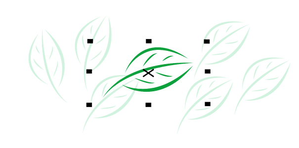 选定对象的周围会显示一个边框,框中心显示一个 "X"。