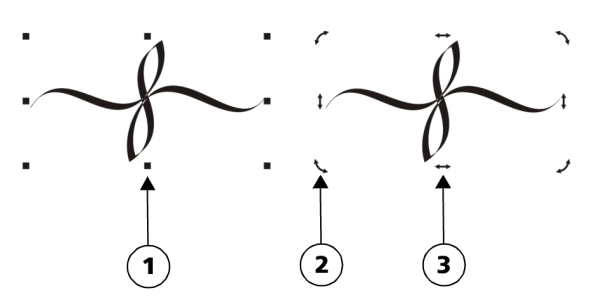 您可以使用鼠标和挑选工具交互地变换对象。该方法最快,但是如果您要精确变换对象,则不推荐使用此方法。