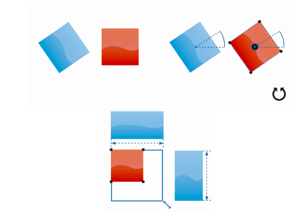 The Intelligent Spacing feature lets you precisely arrange and position an object in relation to other onscreen objects, and the Intelligent Dimensioning feature lets you intuitively scale and rotate an object in relation to other onscreen objects.