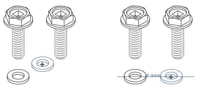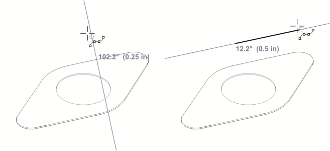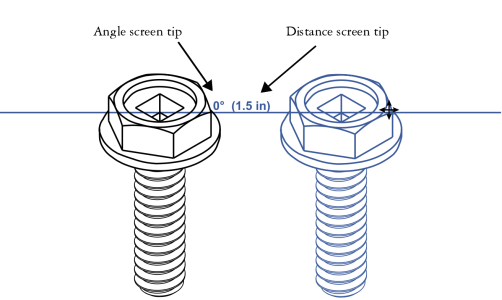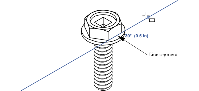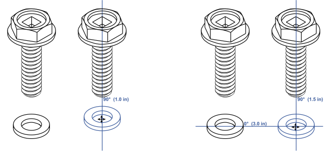 A dynamic guide was displayed from a node in the bolt on the left. The screen tip next to the node displays the angle of the dynamic guide(0º) and the distance between the node and the pointer (1.5 inches). The bolt on the right was dragged along the dynamic guide and positioned precisely 1.5 inches away from the node that was used to generate the dynamic guide.