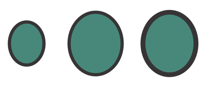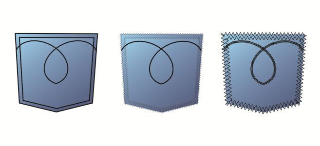 These pocket drawings use a standard line style (left), an enhanced line style with low pattern-width settings (center), and an enhanced line style with higher pattern-width settings (right). The fill is always contained within the object’s path, not the object’s outline.