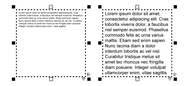 The point size of the text in the frame (left) was automatically adjusted so that it fits neatly inside the frame (right).