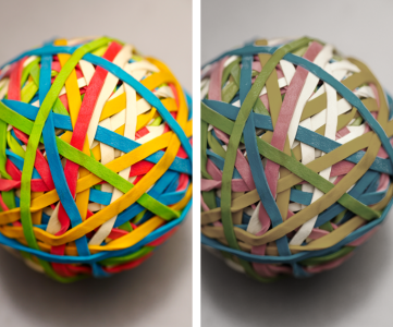 Left: The SWOP 2006_Coated3v2.icc color profile is assigned to the active document. Right: When the Japan Color 2002 Newspaper color profile is assigned to the document, the colors appear much less saturated.