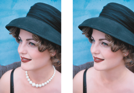 The Clone tool was used to remove the woman’s necklace.