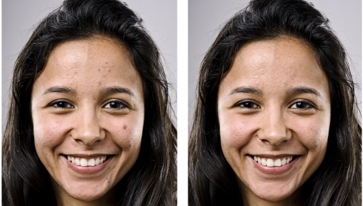 Some imperfections were removed from the girl’s face on the left by painting with sampled texture.