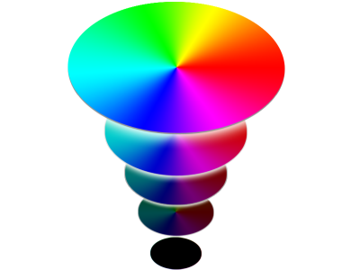 The HSB color model uses hue (H), saturation (S), and brightness (B) as components for defining color. HSB is also known as HSV (with the components hue, saturation, and value). Hue describes the pigment of a color and is expressed in degrees to represent the location on the standard color wheel. For example, red is 0 degrees, yellow is 60 degrees, green is 120 degrees, cyan is 180 degrees, blue is 240 degrees, and magenta is 300 degrees.