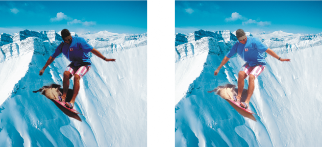 The picture of the man is an image object cut out from a darker image. A lens was applied to brighten the image object without permanently changing the image object or background.