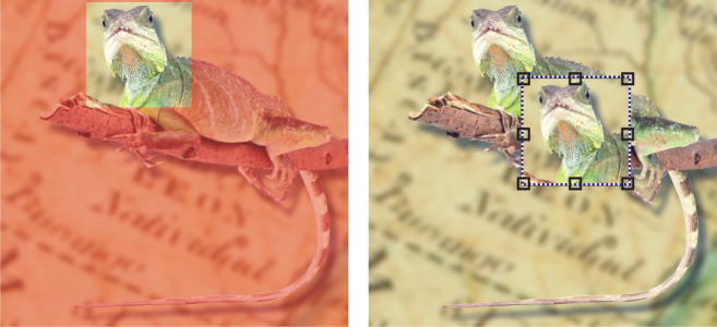 You can create an object by using part of an image background. Here, an editable area is defined and then the selection is copied, pasted, and moved.