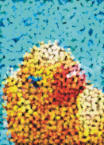 Mosaic) breaks an image into unequal elliptical pieces to form the appearance of a mosaic. You can specify the size of the pieces and the background color. You can also frame the mosaic.