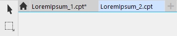 The asterisk after the filename on the document tab shows that the file LoremIpsum_1.cpt has unsaved changes. The file LoremIpsum_2.cpt has no unsaved changes.