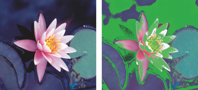 To simulate the output colors that are produced by a device, you need to choose the color profile of the device. Because the color spaces of the document and device are different, some document colors may not have matches in the gamut of the device color space. You can enable the gamut warning, which lets you preview the on-screen colors that cannot be reproduced accurately by the device. When the gamut warning is enabled, an overlay highlights all the out-of-gamut colors for the device that you are simulating. You can change the color of the out-of-gamut overlay, and you can also make it more transparent to see the underlying colors.