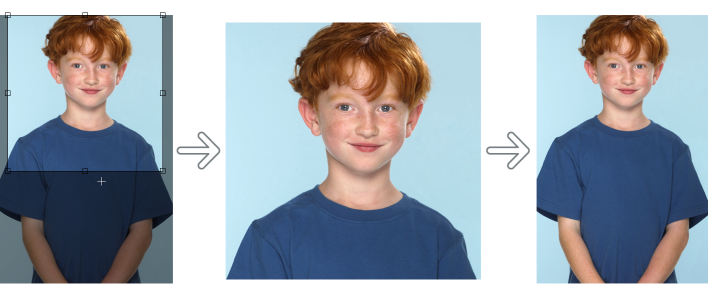 Left to right: Original image; cropped image; undoing the cropping action restores the dimensions of the image.