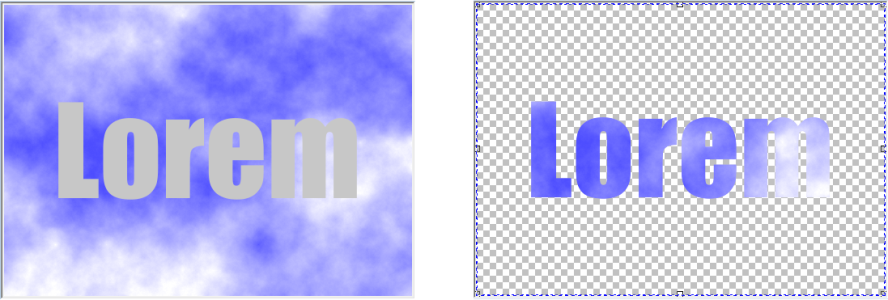 Clipping groups let you borrow the characteristics of one object and apply them to another. In this example, the text (parent object) has the color and texture of the sky (child object).
