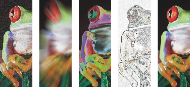 Lets you remove small imperfections and sharpen images. Effects include Dust and Scratch and Tune Sharpen.