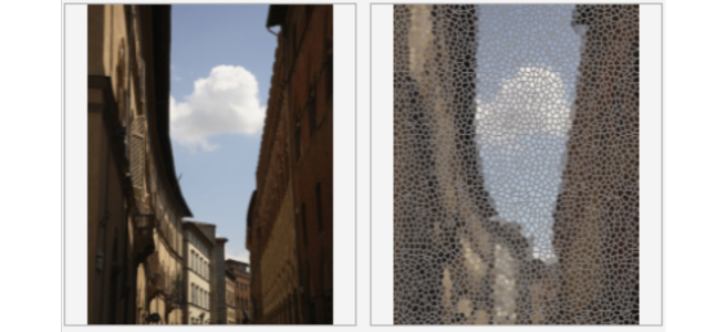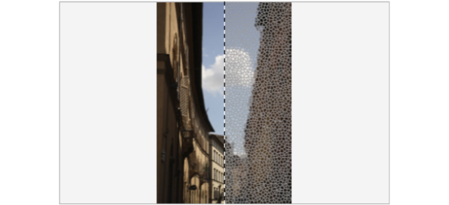 Lets you apply various textures and shapes to an image. Effects include Art Style, Crystalize, Fabric, Frame, Glass block, Mosaic, Scatter, Smoked glass, Stained glass, Vignette, and Vortex.